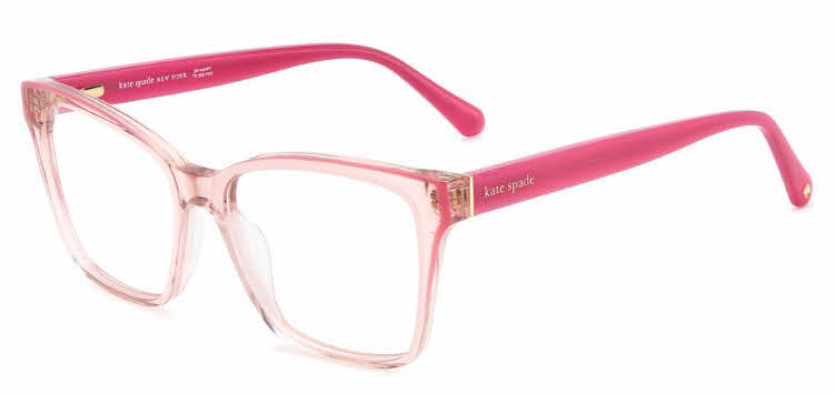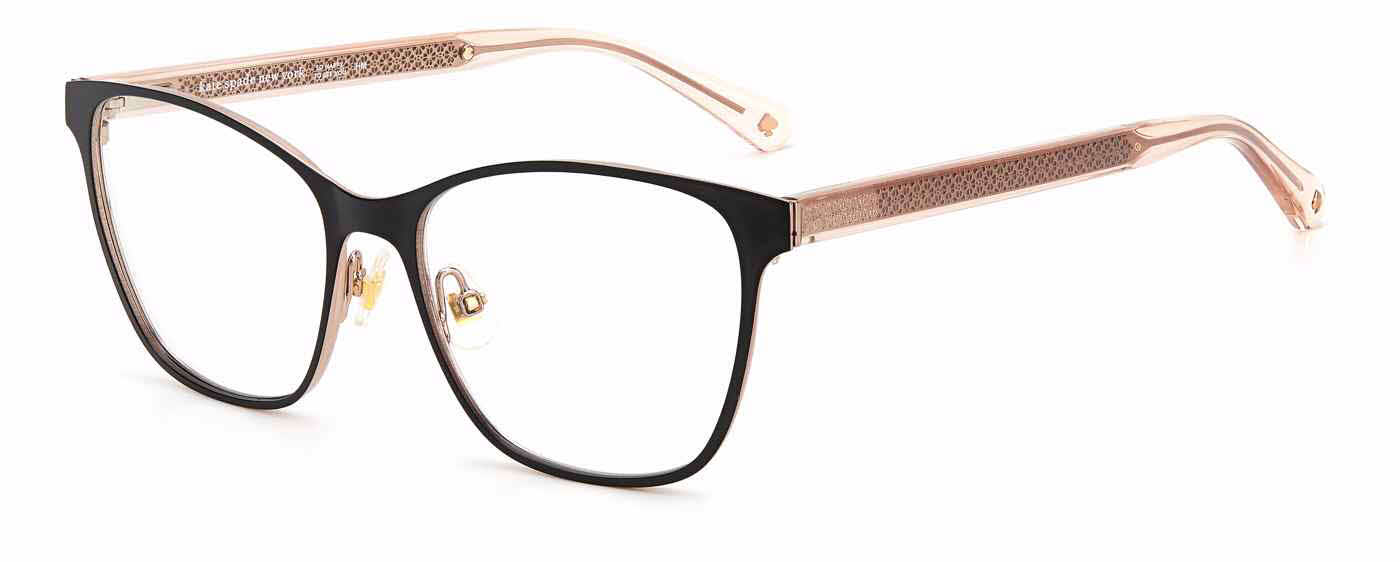 Each pair of Kate Spade frames features the familiar spade-shaped logo or 'Kate Spade - New York' playfully incorporated into the temple designa stylish, unique fashion print. Discover cat-eye sunglasses in classic tortoiseshell caramels, or a pretty pink version of the traditional pattern. You'll find Kate Spade prescription eyeglasses frames in classic silhouettes, as well as eyewear that delivers more drama with sculpted temple arms and bright inlays. The line's Joshelle and Dahlia sunglasses are playful twists on the classic aviator, and the Leticia Us glasses frames showcase fun polka dots and lively colors.