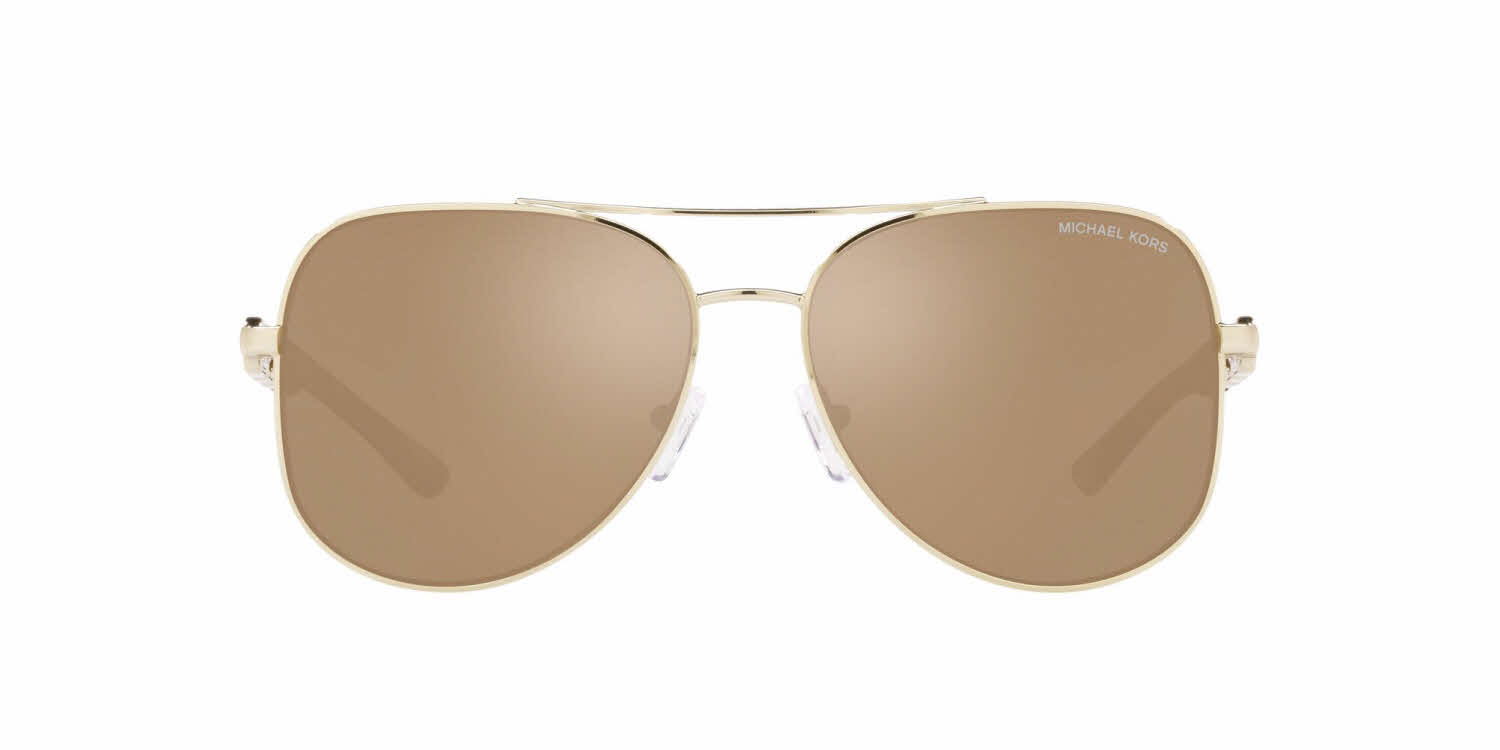 Michael Kors MK1121 Chianti sunglasses offer a stylish interpretation of the aviator silhouette. The metal rims are strong and lightweight, with double bridges that add visual interest to the classic aviator shape. The coated lenses provide superior protection against glare while you enjoy outdoor activities in sunny weather, and come with optional lens inserts for optimal clarity when you need it most. These Michael Kors sunglasses feature an elegant twist on a timeless design.