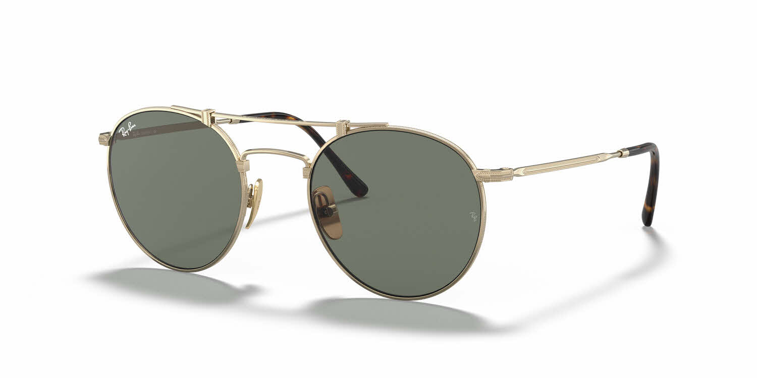 The Ray-Ban RB8147 sunglasses offer impeccable style for the man with refined tastes. With their round, full rims and stylized double bridge, these frames are a fetching update to the classic Aviator silhouette. The featherweight titanium construction offers unparalleled durability, and ultra-fine filigree engraving throughout the design adds understated interest. Crafted in Japan with exacting attention to detail, the Ray-Ban Round Double Bridge Titanium RB8147 shades will take any wardrobe to the next level.