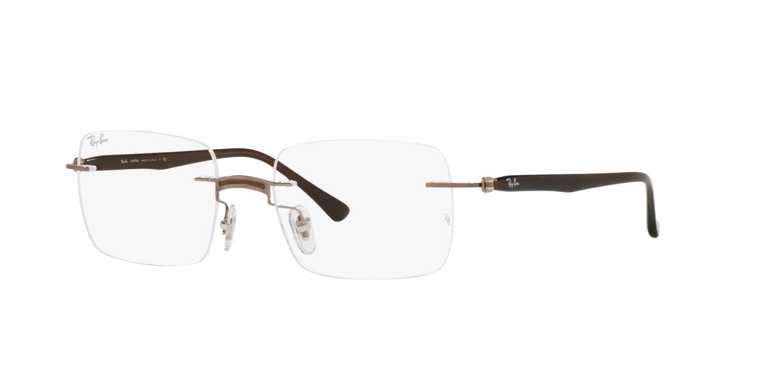Modernise your everyday look with a pair of Ray-Ban RB8767 eyeglasses. The rectangular titanium frames are hypoallergenic and lightweight, resulting in comfortable glasses you can wear all day long. The rimless design adds an edgy feel to traditional aesthetics, while metal temples coated with comfort-coated tips offer stability behind the ears for lasting appeal. Designer appeal is added to these fashionable glasses from Ray-Ban.