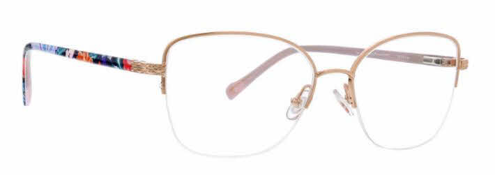 The Vera Bradley Fae eyeglasses offer a bold, feminine look. The semi-rimless frames are metal, strong, and lightweight, ideal for comfortable wear all day long. The skull temples curve inward gently to keep the glasses from slipping during activity. A metallic butterfly motif graces each temple adds an element of chic style to these designer eyeglasses by Vera Bradley.