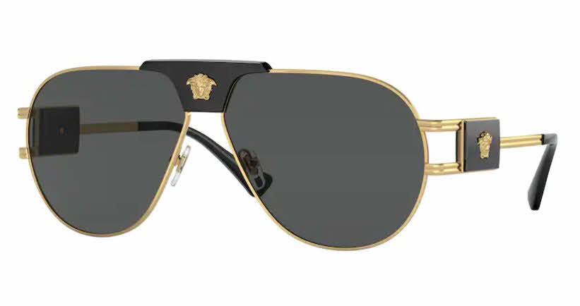 Versace adds a touch of luxury to the classic aviator silhouette in these VE2252 sunglasses for men. The metal frames are strong and corrosion-resistant, with double rivets reinforcing the stress points for longevity. The slim temples widen slightly at the tips for stability behind the ears, and boast an engraved medallion bearing the recognizable Versace symbol near the brow end for added appeal. A pair of aviator sunglasses doesn't get more high profile than when they're on fashion icon David Beckham ,and these from Versace bear his unmistakable stamp of approval.